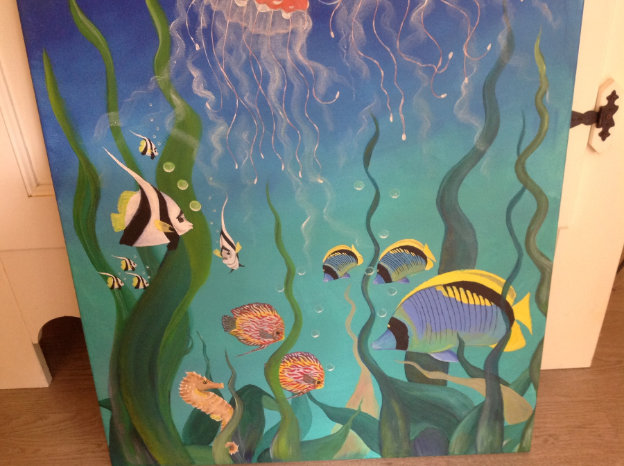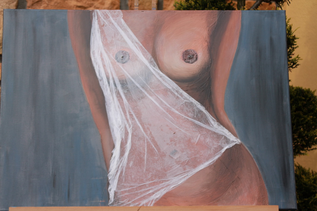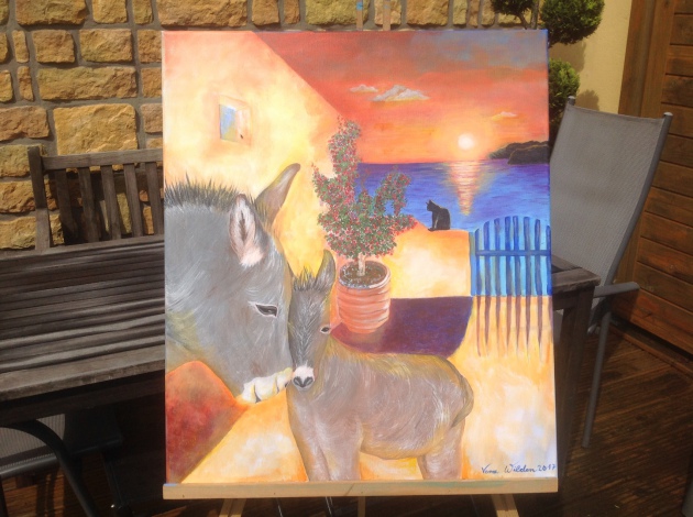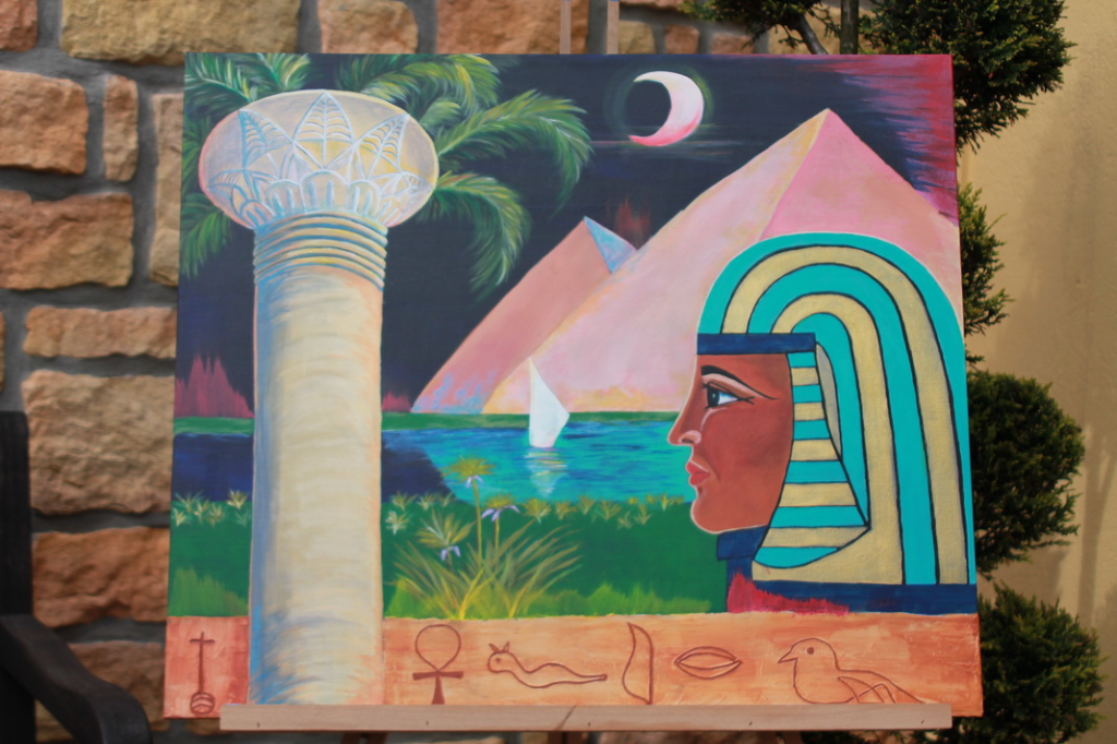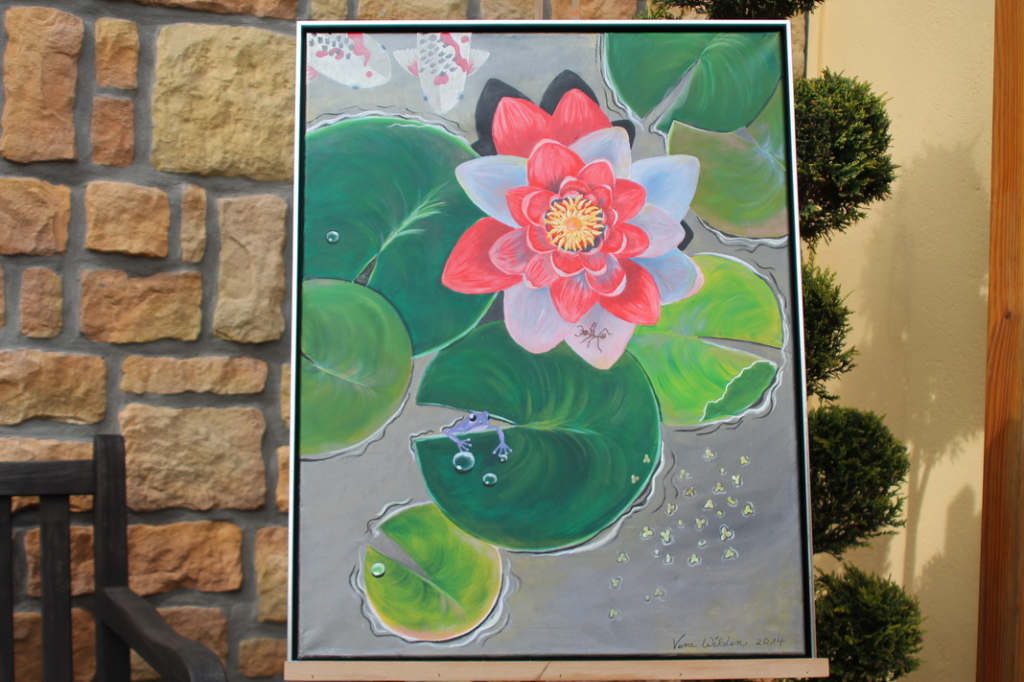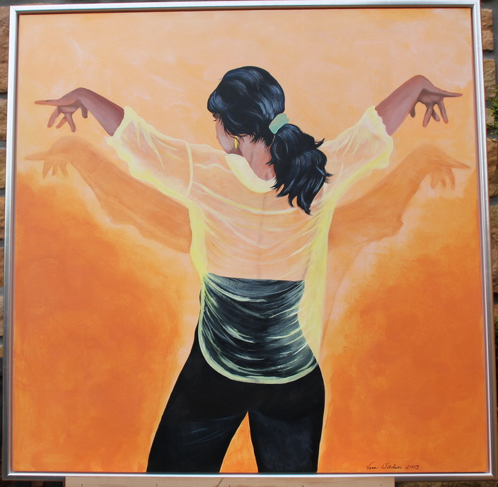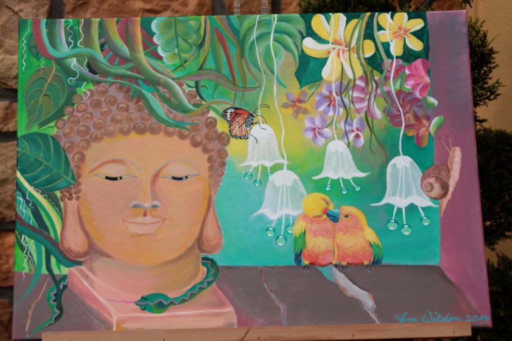 Acryl auf Leinwand,60x80...ich habe einen Vergolder Kurs bei Frau Gabriela Hähle auf der Kunstakademie in Heimbach belegt, sie ist eine gefragte Restauratorin .Sie hat uns die Kunst des vergoldens nahe gebracht.Mein Bild habe ich mit echtem Blattgold belegt, dass ist das Ergebnis...
